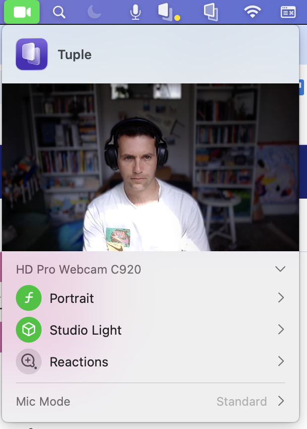 You can also enable and disable video effects from the webcam sharing indicator that appears in the menu bar: